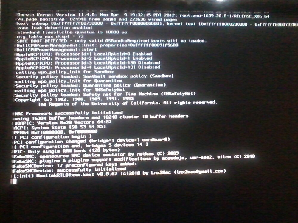 Eu removi a kext realtektrtl81xxx.kext e mesmo assim o sistema não inicia... ele para nesse ponto em que eu fotografei!