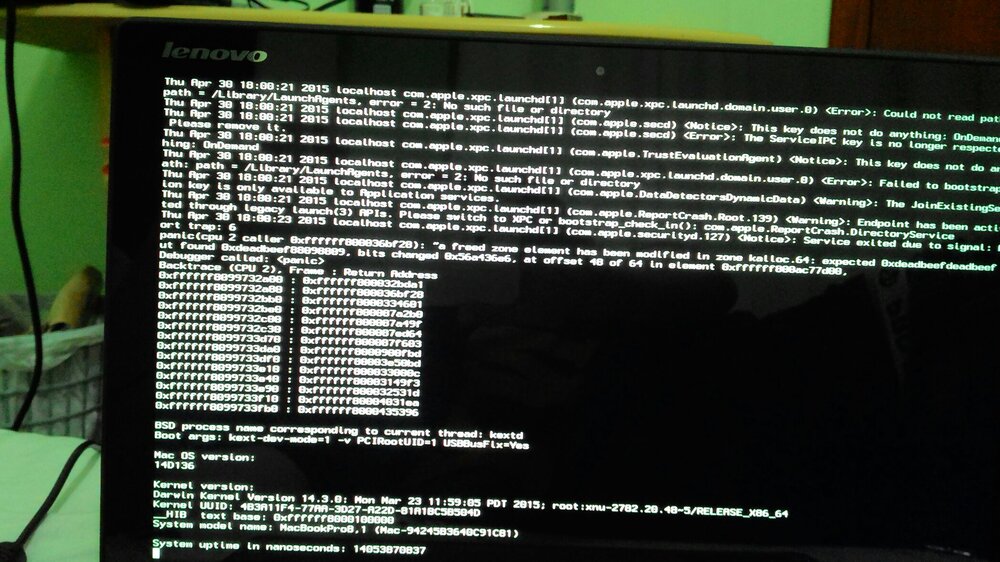 2. Ola, estou tentando instalar o Yosemite no meu novo notebook, porem não estou conseguindo. Já tentei criar o instalador de diversas formas, pelo clover ele trava antes de dar boot, fica somente um - na tela no canto superior esquerdo e tem que desligar o notebook a força. Com o myhack eu tentei o mavericks, porem ele reinicia logo após o ver as kexts no modo verbose ou sem o verbose, ele reinicia assim que aparece a maça. Criando manualmente, ele faz a mesma coisa que com o myhack, já tentei com o 10.8, 10.9 e 10.10. Alguém pode ajudar? Obrigado Obs: Não achei outro tópico que me ajudasse.