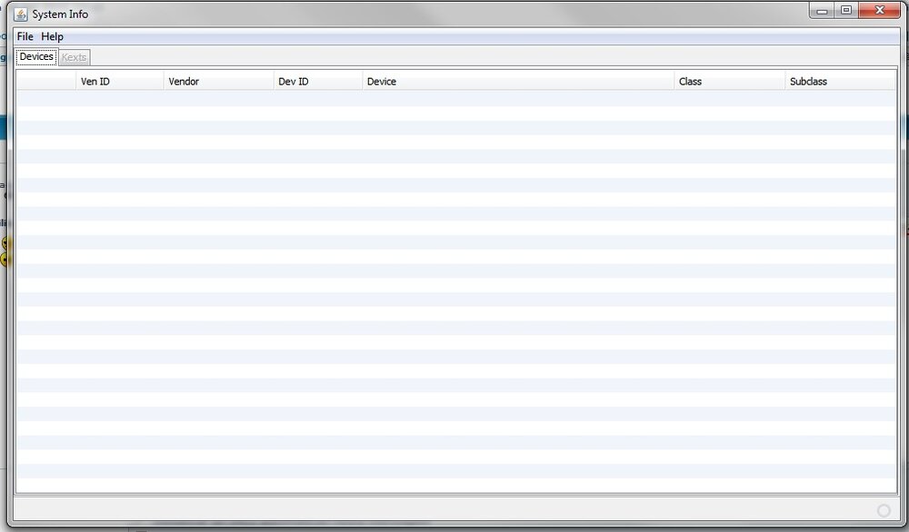 3. Boas pessoal, beixei esse applicativo pra verificar o hardware do meu notebook, mas ele só abre a tela limpa se, não sei porque não encontra os hadwares de minha máquina, já reinstalei o java jre 6 depois o jre 7 todos x64 mesmo assim não aparece nada. como mostra a imagem estou rodando no ruindows 7 HP x64 meu note sony vaio VPCEG13EB Processador Processador Intel® Core™ i3-2310M - 2.10GHz Chipset Intel® HM65 Express Chipset Memória Cache 3MB (L3) Tela de LCD 14 polegadas com tecnologia LED (1366 x 768) Placa de Vídeo Intel® HD Graphics 3000 Áudio Intel® High Definition Audio Memória 8GB² DDR3 SDRAM expansível até 8GB Unidade de Disco Rígido HDD 500GB ainda não consegui instalar nenhuma distro nem retail do mac os x, podendo me dar uma força fico muito agradecido. valeu pessoal.