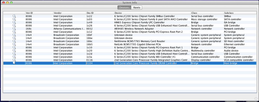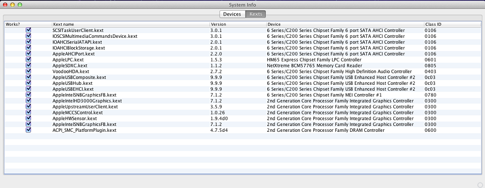 2. Bom dia a todos! Pessoal preciso de uma ajuda de vocês, estou tentando instalar o Hackintosh MAC os Lion 10.7.3 em um notebbok Acer 5750. Segue informações do meu hardware: Processador Intel® Core™ i5-2410M (2GHz, 3MB cache) 4GB DDR3 1333 SDRAM 500GB disco rígido Tela de 15" CineCrystal™ HD LCD (1366 x 768) - Intel® HD Graphics 30000 DVD±RW DL Webcam 1.3 Touchpad multitoque 802.11b/g/n WLAN (Ven ID 168c) Atheros Communications inc (Dev ID 0032) Device AR9845 Wireless Network Adapter Gigabit LAN HDMI® USB Leitor de cartões 4-in-1 Bateria de 6-células Coloquei dois anexos com as KEXTS reconhecidas pelo meu sistema e das informações do meu system Info Devices. Não consigo instalar as placas de rede de forma alguma. Nem a lan e nem a wifi. Som e bateria funcionando. Touchpad não funciona o track. Usb não funciona. Quando tento aplicar outro trackpad da kernel panic. Ja tentei outro Kexts que também dão kernel Panic. Desde ja agradeço toda e qualquer ajuda. Abraço a todos e Deus abençoem!
