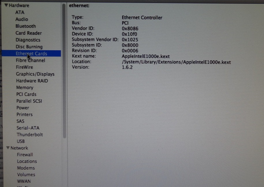 2. Network is not working. I did get connected once but unplug after restart. ethernet was visible at least at that time. However, noethernet after I clean installed again after that, I installed AppleIntelE1000e.kext but no luck. adapter was shown in System info but not in network in system preference.