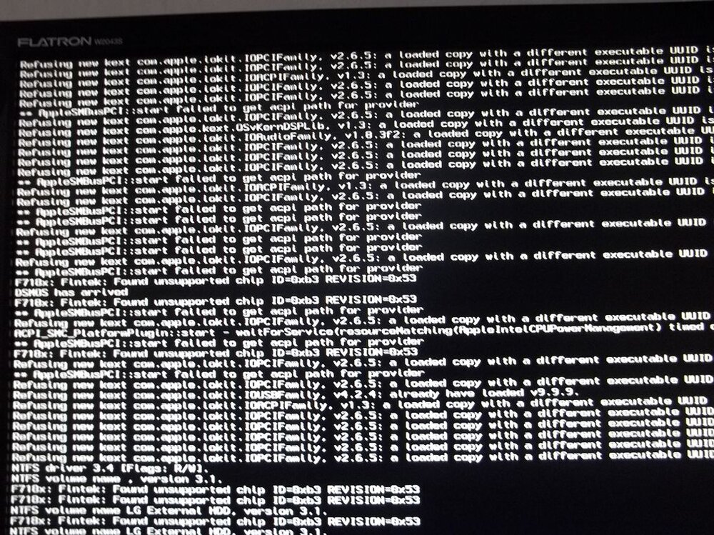 5. ola gostaria de uma ajuda para intalar o os x leopard 10.6 na tela de -v da esta mensagem: refusing new kext com. apple.iokit.iopcifamily.v2..6.5aloaded copy with a different executable uuid is alread present: