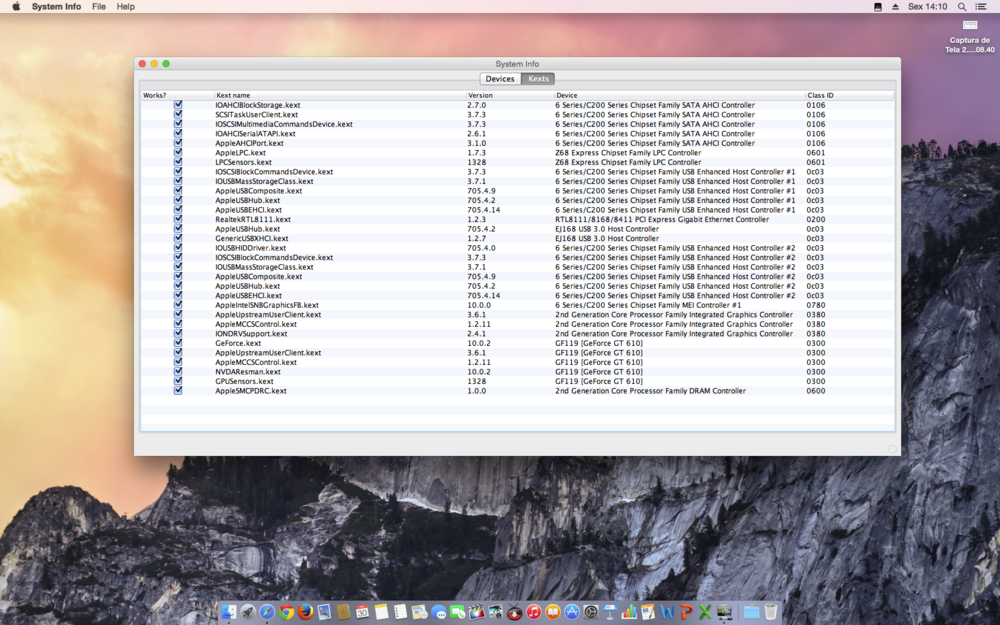 Ainda Não Aprendi Como Resolver este problema. Minha Placa mãe é Asus P8Z77M depois de instalar o Mavericks com unishit, tanto na instalação como pós instalação eu só consigo fazer subir o Mavericks com -x e GrapgicsEnabler=no. Processador Intel Core I7-2600 3.40Ghz. Memoria 16Gb. VGA. Nvidia 610gt. Placa Mãe. P8Z77-M Hardisk 1tera. Se não for pedir muito. Qual as kext usar nesta placa tipo Lan, Áudio,Usb.