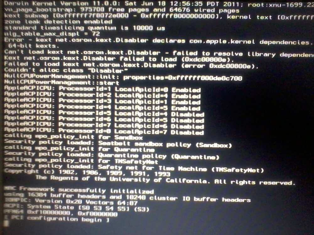 Olá pessoal, Bom dia à todos! Acho que não existe um lugar melhor que esse para se obter ajuda, tendo em vista que por aqui estão os melhores quando o assunto é Hackintosh. Tenho um Sony Vaio vpccw21fx com a seguinte configuração: Chipset :Intel Ibex Peak-M PM55, Intel Ironlake-M Ram : 4 G.B (DDR3-1066) Video : NVIDIA GeForce 310M (256 MB) Audio : Realtek ALC26 2 Wireless : Atheros AR9285 Ethernet : Marvell Yukon 88E8057 HD 500G Ao tentar instalar o Lion na versão para PC (Mac107fix) estou me deparando com o seguinte erro na imagem em anexo Alguém já passou por isso e poderia me ajudar? Por favor!