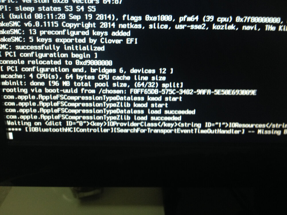 8. Pessoal, consegui instalar o sistema no meu computador, mas não consigo entrar na tela de boas vindas. O meu boot chega até essa parte: --missing Bluetooth controller transport! Já retirei as kexts de vídeo da pasta library extensions, mas não consigo chegar na tela de login! Estou usando o clover boot loader. Por favor me ajudem já estou a dias tentando arrancar o sistema!!