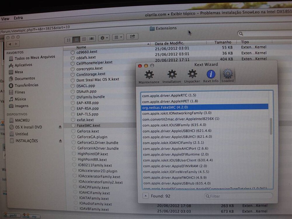 Eu já tinha feito a instalação desta kext, mas reinstalei por dúvidas e não mudou nada ainda. Pernacabeluda a imagem em anexo mostra a Kext FaKeSMC como carregada, pode ser outra coisa?? -