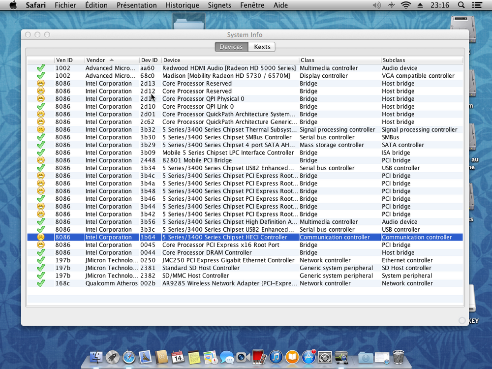 My Wifi Card Atheros AR9285 and Sound Card ACL269 run with kext.