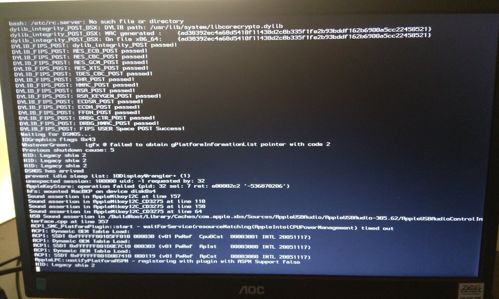Com muito custo consegui fazer subir o OS X, porém com uma imagem de outro tutorial, após subir o sistema, continuei por aqui, instalei o Clover que está na pasta files do pendrive do Olarila e então substitui pelo Clover da pós instalação, mas travou conforme a foto, daí bootei com o outro pendrive para subir o sistema e rodei o Runme.app (arquivo anexado), já evoluiu um pouco Já agradeço a colaboração. Send me Mac-mini-de-ZAS-TRAS.zip- 1,927 replies