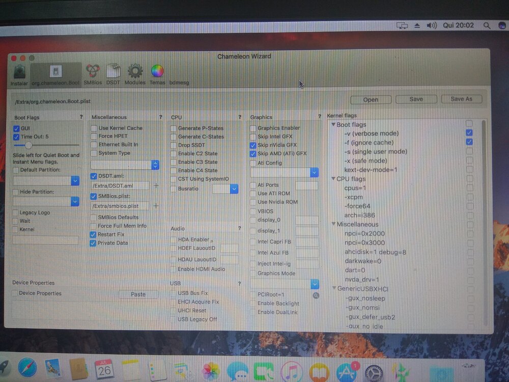 Fiz alterações, mas continua na mesma, estou anexando os arquivos do config.plist original e o que eu editei, podem dizer se está certo ou onde errei por favor. Ah, tem um print também com indicação da config. com referência à HD Graphics 7000 e a minha é HD Graphics 3000, isso pode estar relacionado ao meu problema? Desde já agradeço. CLOVER-config.plist.zip- 1,927 replies