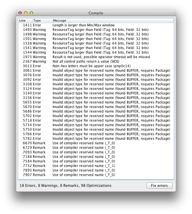 1. Hi, I am trying to complete my Mavericks installation on a P8P67 Deluxe but I am running into issues on my post installation. The basic Mavericks installation using unishit went quite smooth. I am able to use networking and even the sleep mode works. But sound is not working out of the box ... When running the multishit post installation I get kernel panics afterwards ... I have now built a custom DSDT for my ASUS P8P67 Deluxe board using the modified 2302 BIOS from http://biosrepo.wordpress.com/asus/p67-2. Unfortunately I am still facing kernel panics after using my custom DSDT with multishit 6.1. I am thus wondering if the following problems I encountered during the process of building it with the DSDT editor may be causing these. I had 18 compilation errors (8 Warnings, 8 Remarks) with the clean system extracted DSDT (see attached screenshot) I then pressed the "Fix errors" button and applied the patches for the "ASUS P8P67 Deluxe" available at http://Olarila.com/forum/packs.php. This resulted 6 Warnings As I am still experiencing kernel panics after running multishit with the custom DSDT I am not sure this process worked. The following presets where done when loading the custom DSDT: Drivers -> Disk -> 3rd Party SATA Drivers -> Misc -> FakeSMC v5.3.820 Drivers -> System -> AppleRTC Patch for CMOS Reset Bootloaders -> Chimera v2.2.1 Customize -> Boot Options -> Basic Boot Options Customize -> Boot Options -> Generate CPU States Customize -> Boot Options -> Hibernate Mode - Desktop Customize -> Boot Options -> Use KernelCache Customize -> System Definition -> Mac Pro -> Mac Pro 3,1 Customize -> Themes -> tonycrapx86 Black The only additional change I did is to add the ALC889 Audio driver (in the With DSDT section) I now still get kernel panic I suspect that problems may related to my custom DSDT file ... Any feedback appreciated. Thanks, Olaf