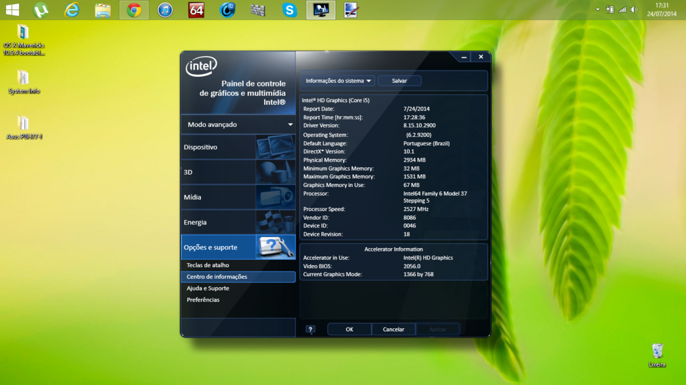 Oi Amigos tenho um dell inspiron 15r n5010 vou tentar instalar o maverick mais minha placa wi-fi e Broadcom BCM 4313.vou ter que trocar! Estou na duvida se e mine para comprar uma compatível com Airport. tirei uma foto da configuração com AIDA64 Gostaria de saber a melhor indicação para a compra e substituição do mesmo. Grato. tirei uma foto da configuração de compatibilidade do System info e com AIDA64 Quais dificuldades irei encontrar? Processador Core i5 Intel hd graphics primeira geração arrandale Que cpu devo usar no config. plist do clover ?
