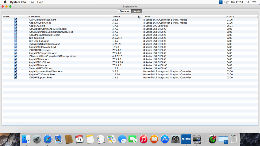 11. Pessoal meu hack esta quase 100%, agora estou com dificuldades para ter a aceleração grafica da minha HD4400. Não entendo muito sobre edição da DSDT e fui seguindo alguns tutoriais tentando as kexts AppleIntelFrameBufferAzul e AppleIntelHD5000Graphics mas via DSDT /SSDT não consegui fazer carregar a HD5k. Agora quero usar o metodo proposto pelo RehabMan utilizando FakePCIID.kext junto com a FakePCIID_HD4600_4400.kext, lendo sobre a instalação destas kexts vi que preciso remover todos os patches relacionados a AppleIntelHD5000Graphics e libCLVMIGILPlugin.dylib e não sei como fazer isso. Alguem poderia analisar meus_arquivos.zip para ver se estão prontos para esse método? Yosemite 10.10.3 haswell i5 c/ HD4400 - 8086:0a16 mobile bootloader - clover Obrigado