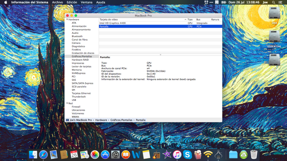 Olá meus colegas deste fantastico site. Poderiam-me explicar o que falta na minha dsdt e ssdt para que a NVIDIA esteja desactivada?? Porque de resto o meu hackintosh funciona as mil maravilhas!! é o fruto de todo o esforço desta grande comunidade! Hip Hip Hooray! Meu hardware é um Asus X550LD Intel Core i7 (native speedstep) Intel HD 4400 (full qe/ci) Nvidia Geforce 820m Adjunto os arquivos da minha efi/clover/acpi/patched Muito obrigado de antemao patched.zip config.plist.zip