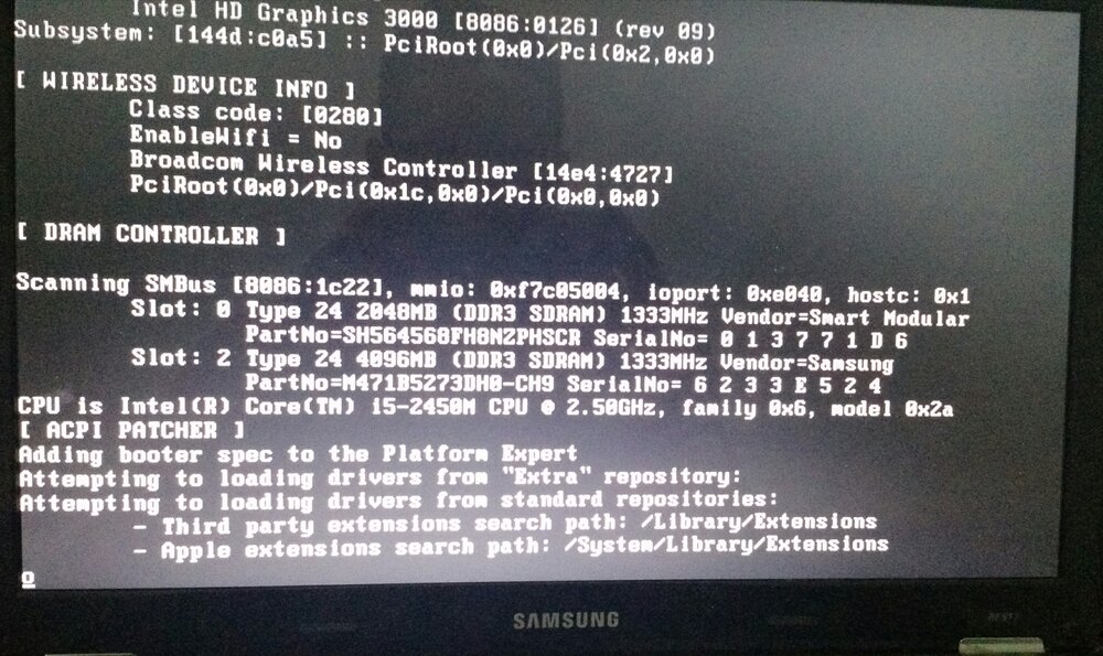 5. Desmarquei as mask fix DSDT e inicie em verbose. Só aparece o hífen e reinicia. Segue foto