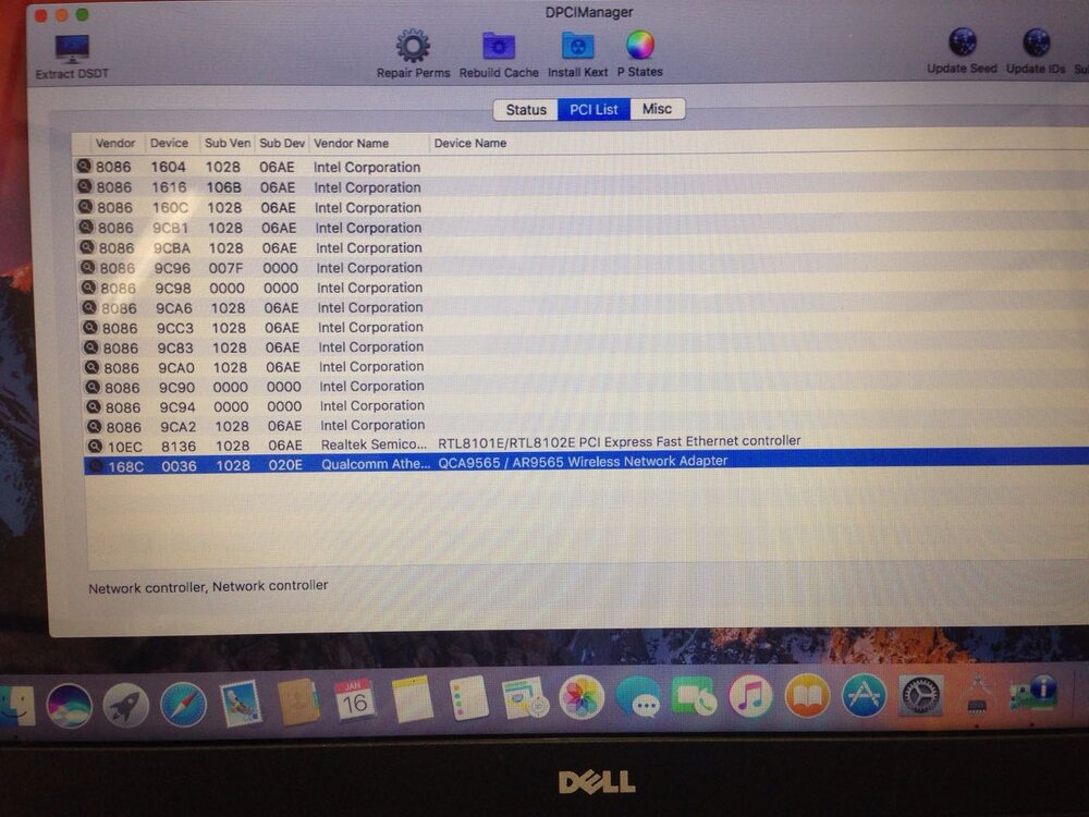 1. Bom dia a Todos, preciso da ajuda de vocês, eu tenho um Notebook Dell 5558 com Placa de Rede Wifi que estava funcionando da Versão El Capitan, mas agora ao instalar o OS X Sierra elá não funciona mais, alguém pode me ajudar. Segue as Informações da minha maquina.