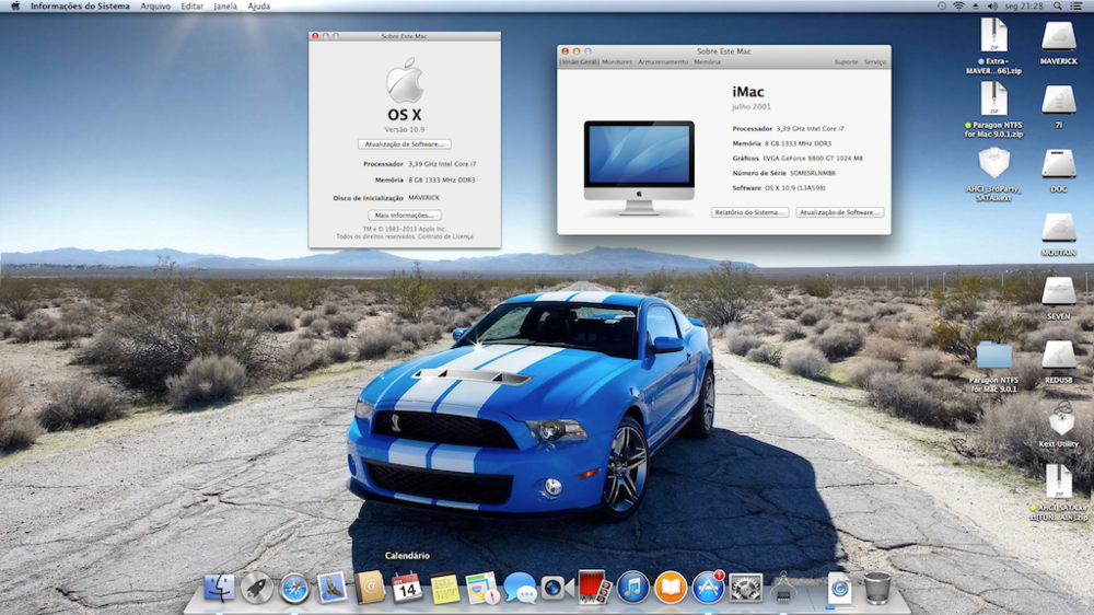 8. Obrigado amigos, eu realmente preciso me atualizar...pois instalei o Mavericks assim que vi o post bem legal...e deu certo...podem deixar, irei editar a SMBIOS e utilizar o Chameleon Wizard...um grande abraço a todos!!!! MB Intel® Desktop Board DP67BG - 8 Gb Corsair DDR 3- 1TB Green Caviar (que não dá boot!!) + 500MB TB Blue Caviar (boot) - Intel Core i7 - LG Flatron IPS LED 236 - Sem DSDT - PCI Adapter Wireless TL-WND4800 - Teclado Microsoft - Webcam Logitech