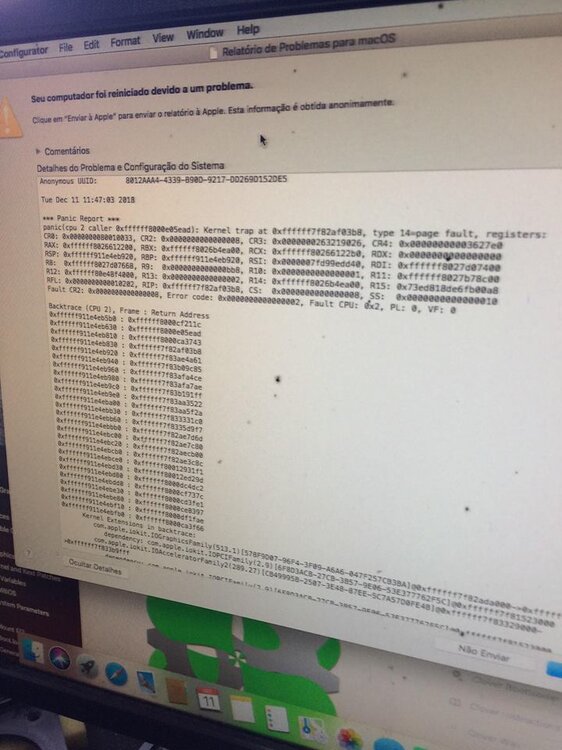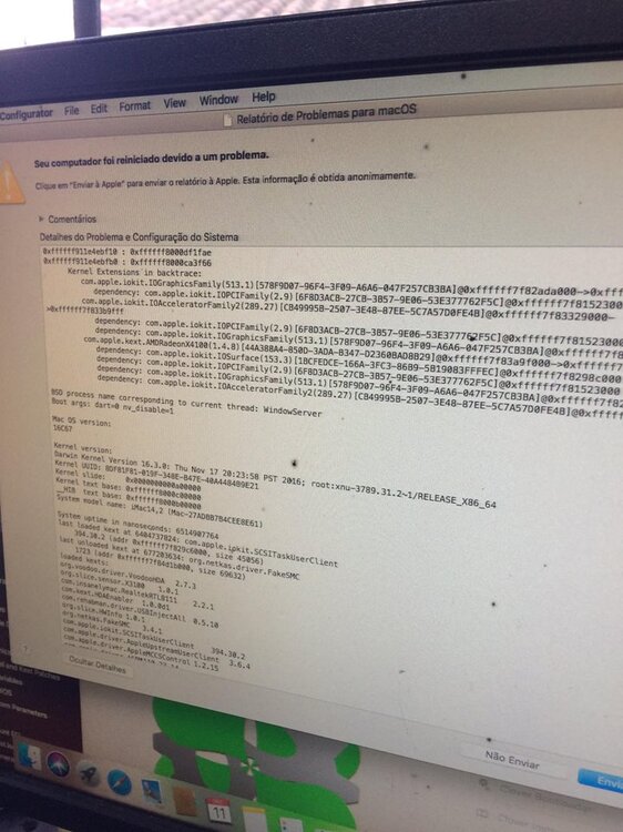 Bom dia, estou com um problema em um hack, com a intel graphics 530, o computador ta funcionando tudo perfeito os gráficos são carregados certos mais toda vez que desliga ele tem um kernel panic e pelo que ve é a intel graphics que gera isso o que não intendo é que ela funciona certinho so quando desliga isso acontece e não to achando muita coisa sobre esse problema, alguém sabe me ajudar ? toda vez que ligo ele vem a mensagem de um erro q vou posta aqui a foto deles.