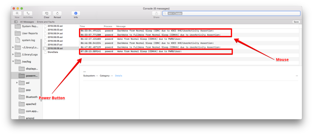 But I think it's not monitor problem. If I push button on mouse my PC wakes in two stages (please see screenshot) - DarkWare from Normal Sleep and after DarkWake to FullWake from normal sleep. If I pushing power button on case we have wake in one stage - Wake from Normal Sleep. Is there possible to program wake with mouse and keyboard same as with power button? -