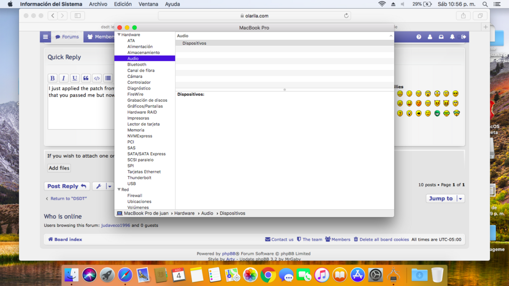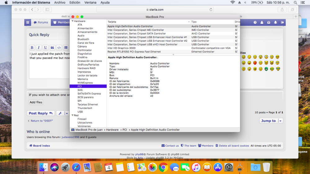 Hola eh instalado Mac OS high Sierra en mi laptop Dell xps l322x pero no logro obtener aceleración gráfica ni sonido tampoco me funciona agradecería cualquier ayuda o información para poder obtener mi Hackintosh Added in 8 minutes 27 seconds: Hi install Mac os High Sierra to my Dell xps l322x has a core i5 3 generation with intel hd4000 but I can not get graphic acceleration or sound would like help to get full operation and get the DSDT would greatly appreciate any help or information to get my Hackintosh Send me MacBook-Air-de-juan.zip Send me MacBook-Air-de-juan.zip
