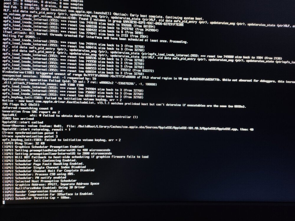 Hi MaLd0n, it's been now 2 weeks of researching and trying all the patches and kext and parameters for this IGPU kernel panic or hung at boot issue. Please see the logs, pictures with error screen and the way I change 0x12345678 to manage to boot without Intel driver loading. send_me logs include fresh origin F4 from Clover. Please help, and enjoy the contribution to beer funds! Thanks m8! Invictus _______________________________________________________________________________________ Fujitsu G558(H310 based) - i5-9600K, UHD630, 32GB RAM, Intel 660P NVME, RTL8111 Send me Mac-mini.zip
