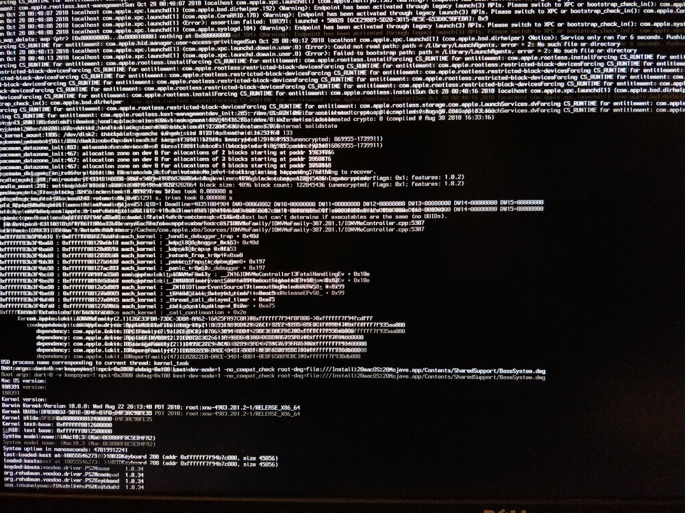 [ref]MaLd0n[/ref], Thanks for the help! I can't get a decent picture of the KP when booting the INSTALL (see picture attached). When I try to boot my SSD that had Mojave working on the previous computer, I get a different error, but I assume that's because the DSDT.aml is wrong... Many thanks again! You're the man! (a beer was sent earlier, but I forgot to mention :beer:)
