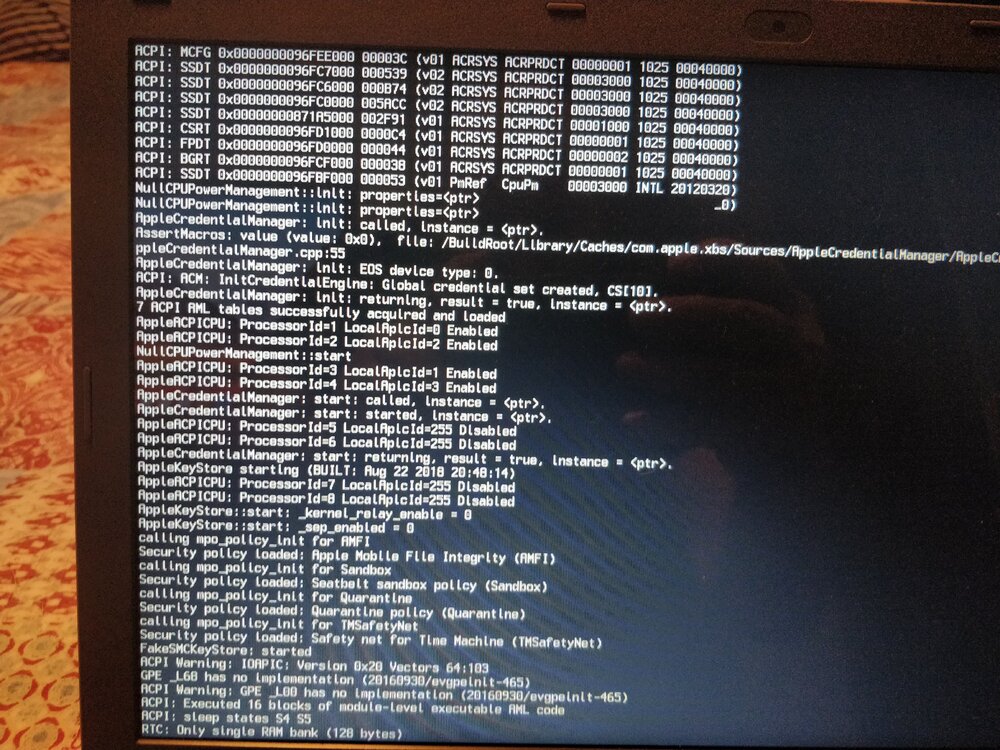 1. Acer Aspire E5-573G-72UF Intel Core i7-5500U 2.4 GHz 16384 MB 1024 GB 240 GB SSD Por favor preciso de ajuda estou tentando a varios dias instalar, Mojave Olarila, mas nao esta facil, parei na tela abaixo, agradeço muitissimo se alguem me der uma ajuda, obrigado. Please i need help, i'm still trying for a couple days to install, Mojave Olarilla, but it is not easy, i'm stuck in the screen below. i would be really thankful if someone could help me, tks.