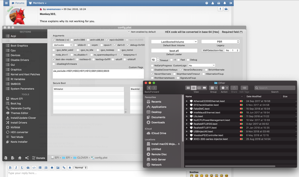 Hello again! So there is a software update for 10.14.1, but when I try to update, it starts to install, then says something about generating a report and reboots, but it hasn’t installed the update. Also, on the clover boot screen, I have: 1. Boot macOS install from install macOS Mojave 2. Boot FileVault prebooter from Preboot 3. Boot macOS install prebooter from preboot 4. Boot macOS install from Hackintosh 970 Pro 5. Boot macOS from Hackintosh 970 Pro 6. Boot recovery from recovery I think number 4 and 5 start to do some kind of install and they hang at 28 minutes remaining. Are they from previous install attempts, or are they to do with the failed update? Finally, I have a RX 560, It installed ok, but scrolling in safari and mouse pointers are not quite smooth, could this be something left over from the uhd 630 graphics drivers? Or do I need to add drivers manually for the rx 560. Thanks. -