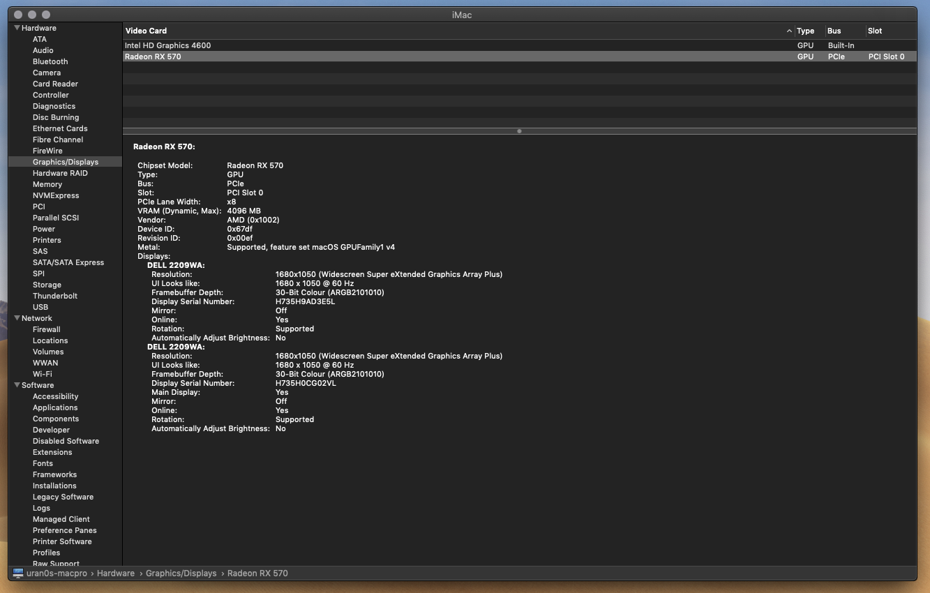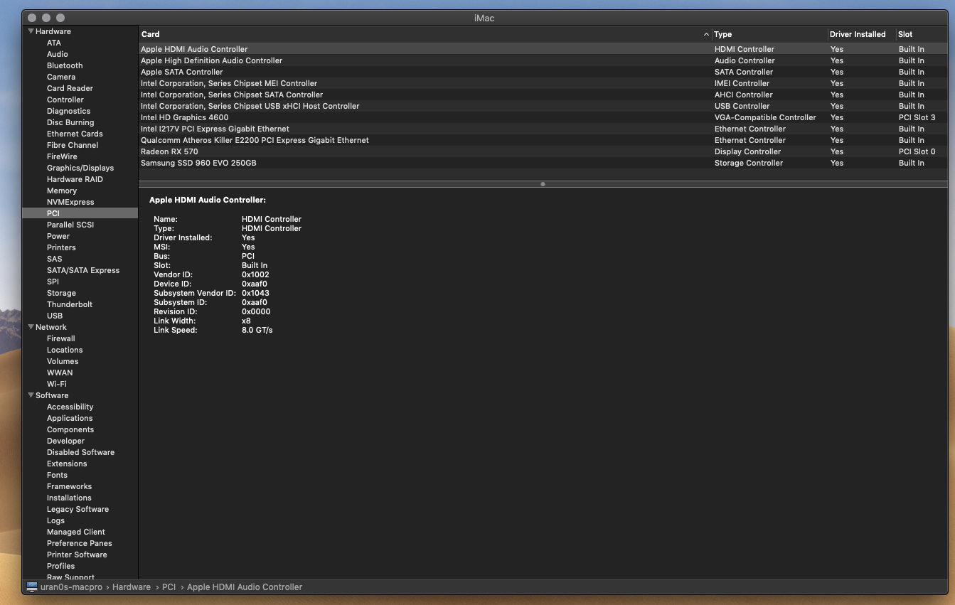 Mobo: Gigabyte Z97X UDH5 Rev 1.0; i7 4790K @ 4,7GHZ; 32GB DDR 3 2400MHZ; AMD Asus Strix 570 OC 4GB; NVMe Samsung 960 EVO, Mojave Beta 8.