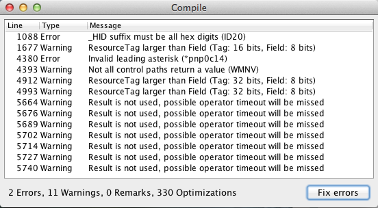 ChrisReno1234 Posted May 30, 2013 Posted May 30, 2013 Hey My CPU refuses to sleep I have Full graphics acceleration on my evga gts 450 gpu in a pci-e slot. I simply want a dsdt patch for my motherboard ZOTAC NF610I-E-E every thing else works i get errors when i attempt to compile my dsdt. Here is the dsdt i saved after auto correcting the errors that could be corrected by the program. The rest are in the screen shot i may have given to many files but its all in the attachment the screen shot, saved dsdt.aml with the bugs in the screen shot and the send me file Thanks a bunch in advanced i hope i gave a proper request and proper info. But essentially when i put my computer to sleep every thing is still running in the background but the screen is black and wont come off i have to hold the power button Thanks alot if you can help. Send me Chris’s iMac.zip DSDT.aml.zip